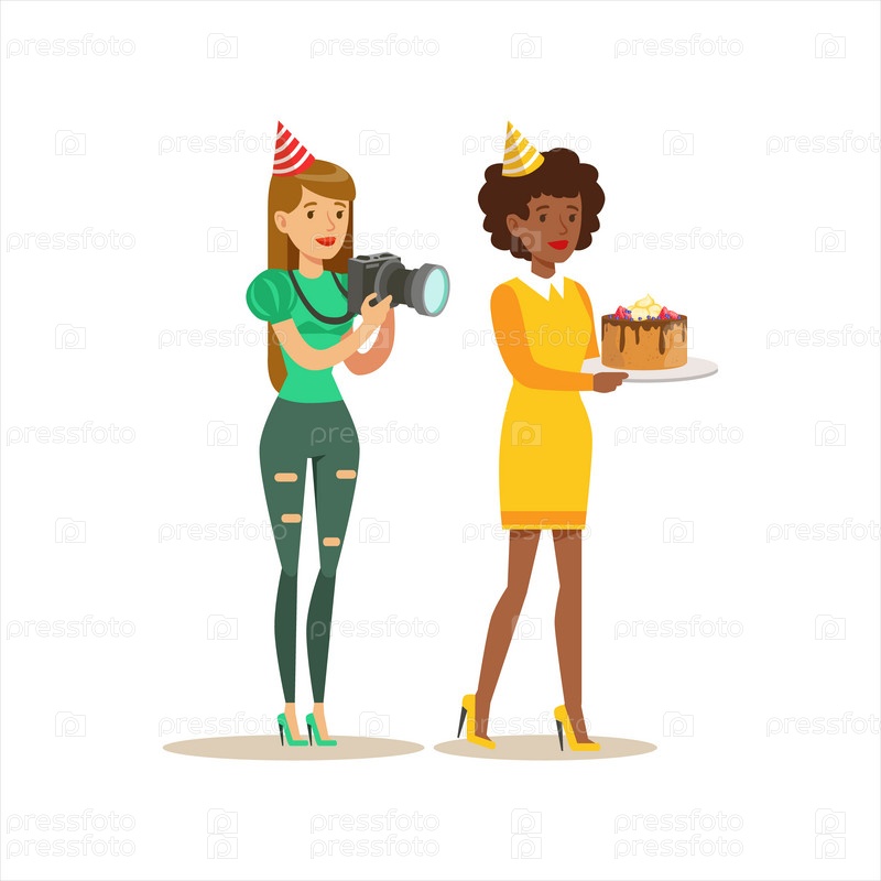 Две женщины приносят торт