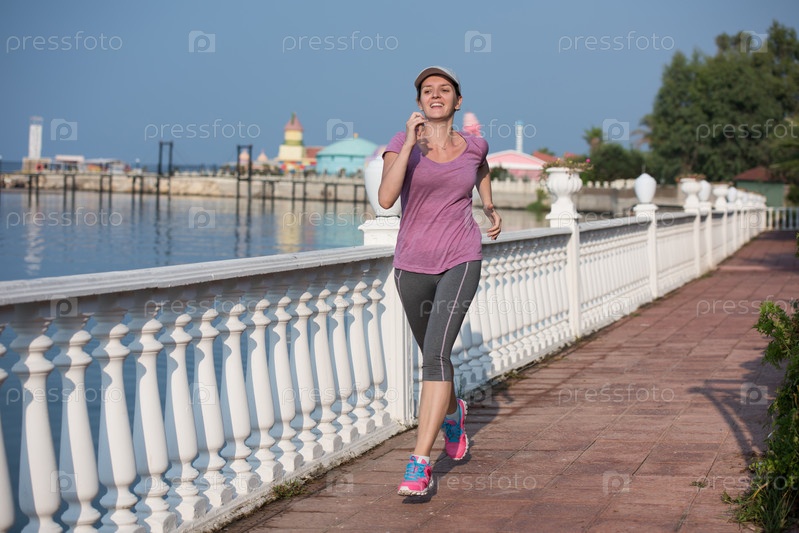 Спортивная женщина бегает трусцой