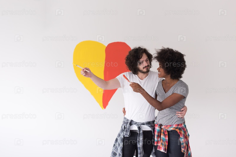 Пара с нарисованным сердцем на стене