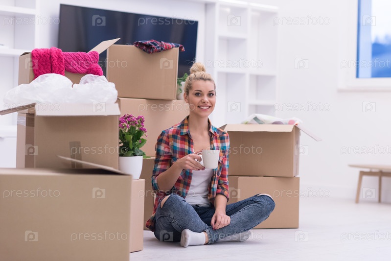 Женщина с большим количеством картонных коробок