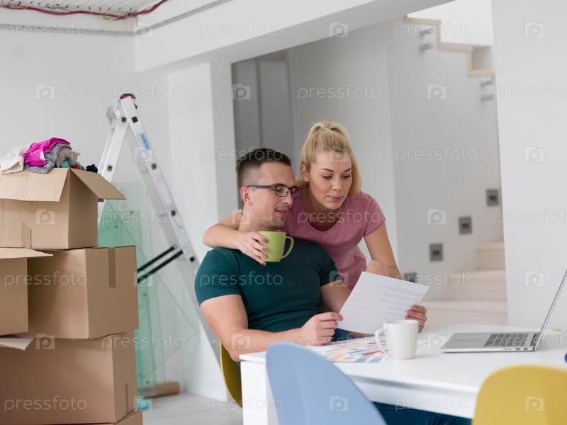 Молодая пара в новом доме