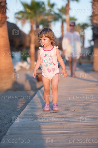 Девочка и мать гуляют
