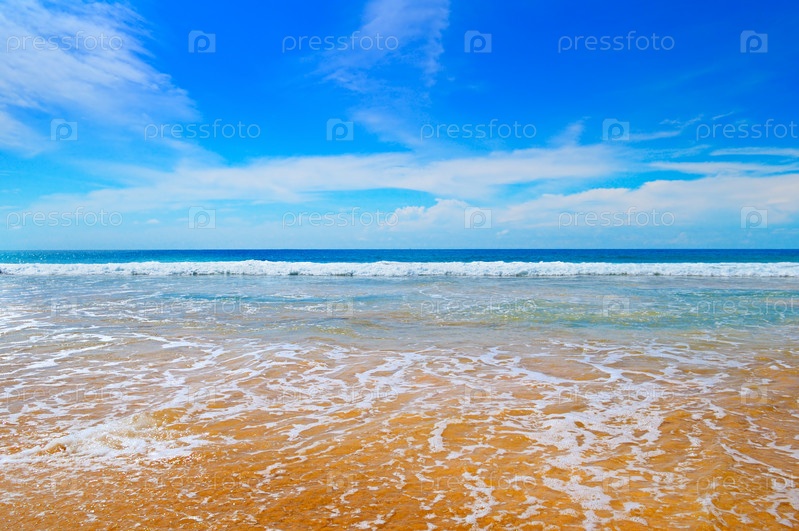 Песчаный пляж и голубое небо