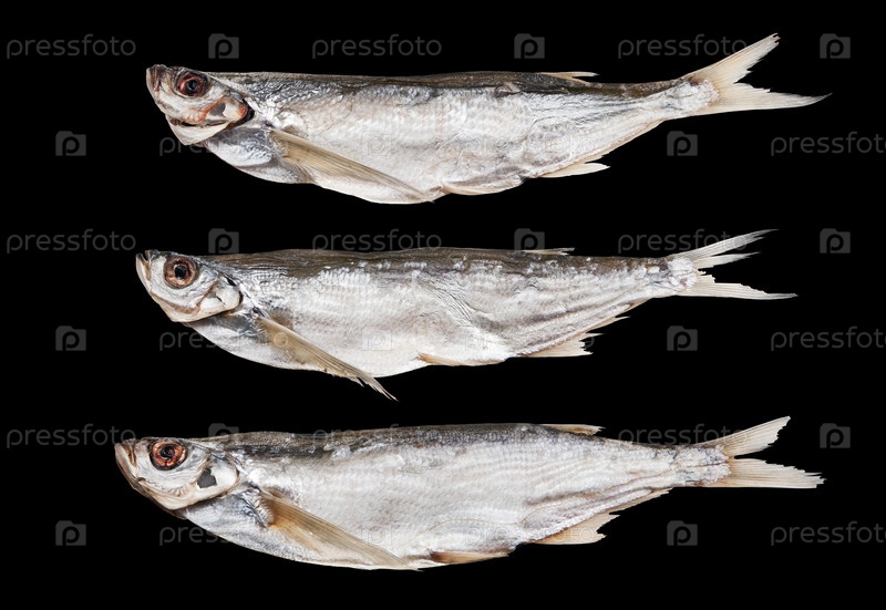 Сушеная рыбка на черном фоне