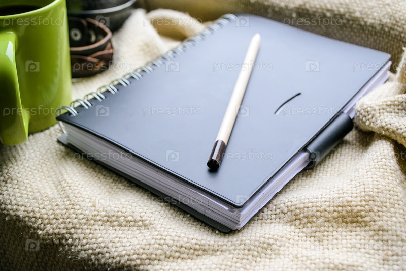 Чашка кофе и ежедневник на окне
