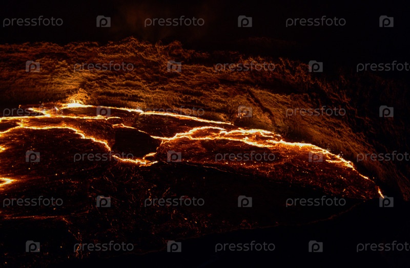 Панорама кратера вулкана Эрта Эль, талая лава, Данакильская впадина, Эфиопия