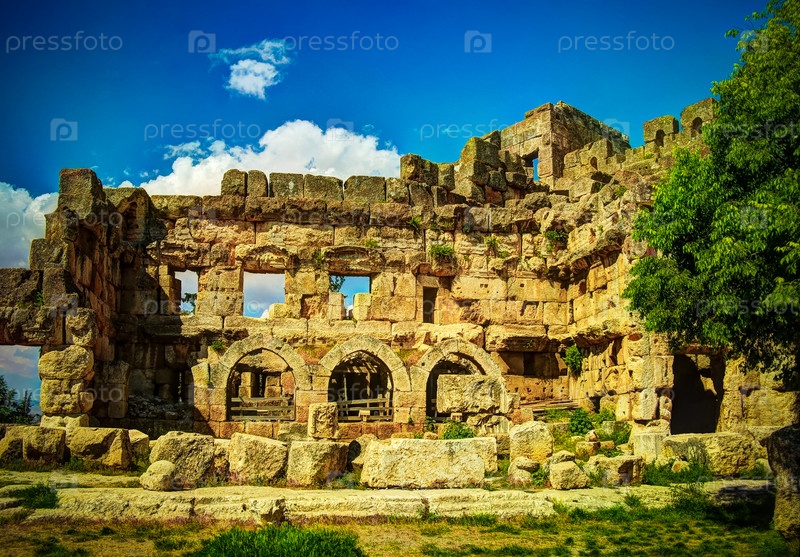 Руины храма Юпитера и великого двора Гелиополя в Баальбеке, долине Бекаа, Ливан