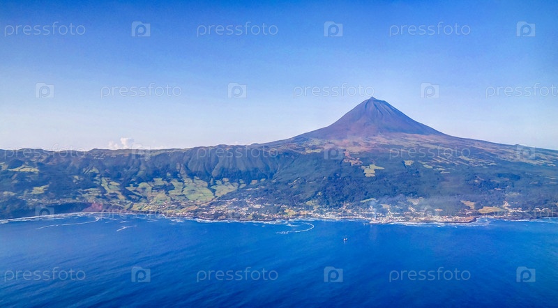 Вид с воздуха на вулкан Пико и остров Азорские острова, Португалия