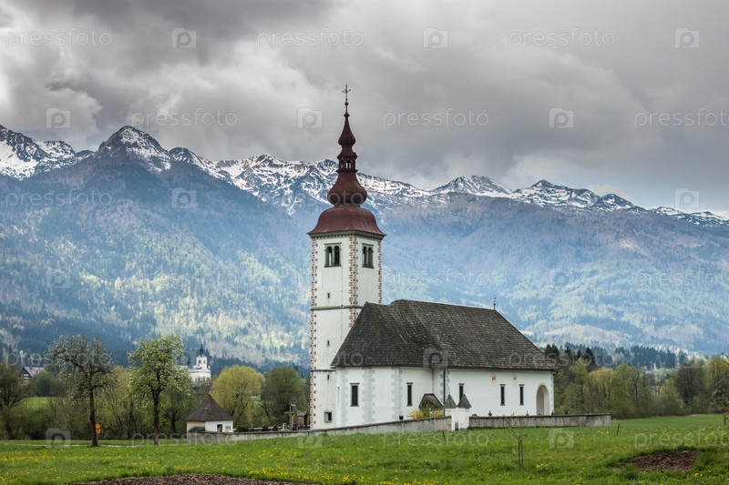 Католическая церковь в поле среди Альп