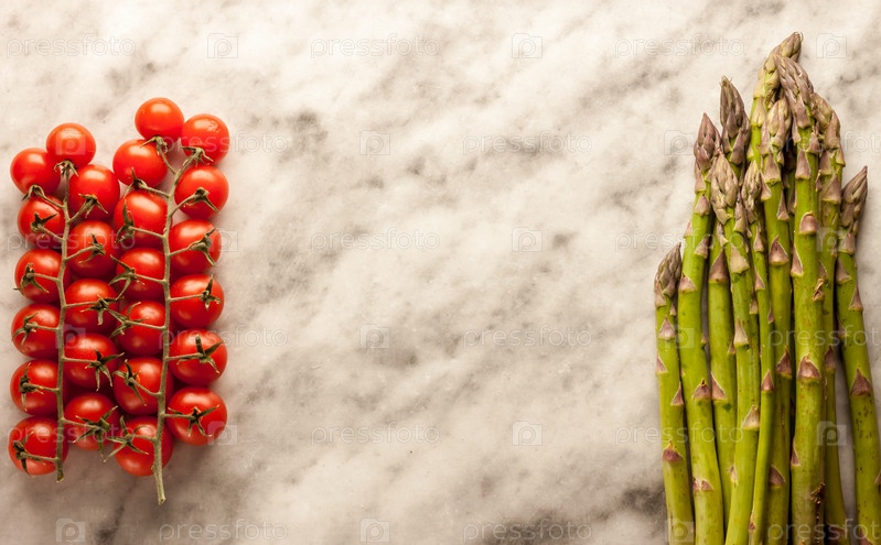 Спаржа и помидоры черри на мраморном фоне