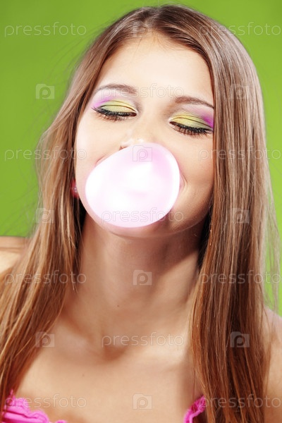 Девочка с большой жевательной резинкой