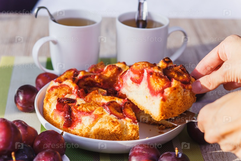 Сливовый торт и две чашки чая
