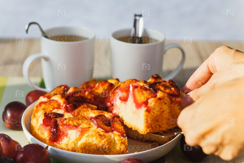 Сливовый торт и две чашки чая