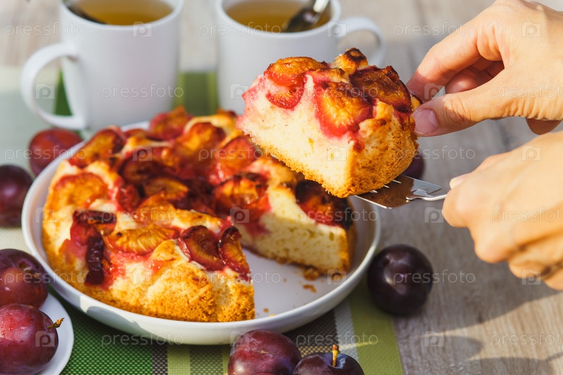 Сливовый торт и две чашки чая
