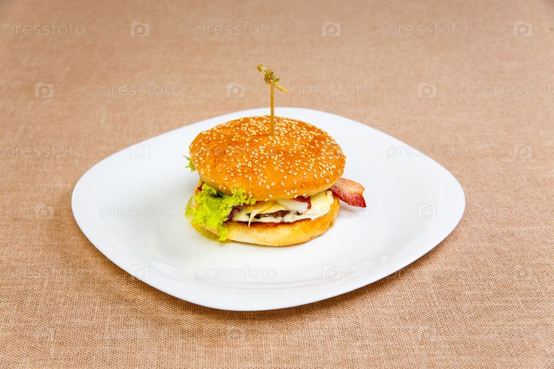Большой и вкусный гамбургер с беконом