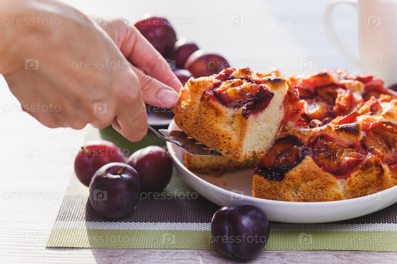 Сливовый пирог и чашка чая