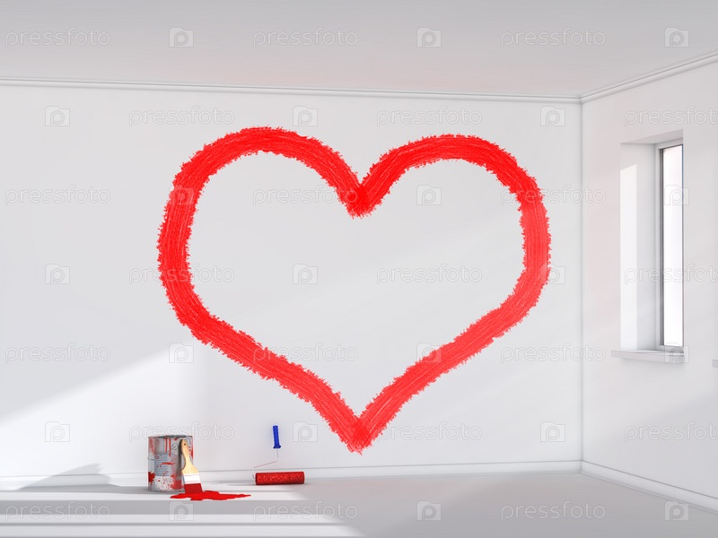 Красное сердце на стене