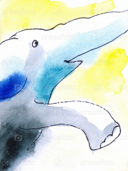 Шагающий слон. Акварельная открытка