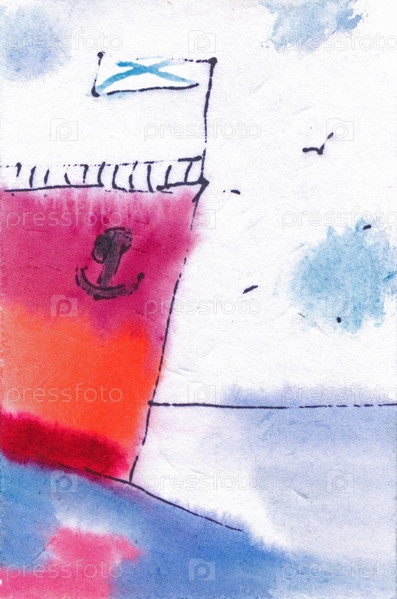 Корабль на волне. Акварельная открытка