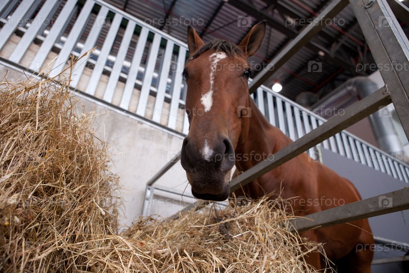 Лошадь ест сено