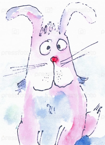 Розовый заяц. Акварельная открытка