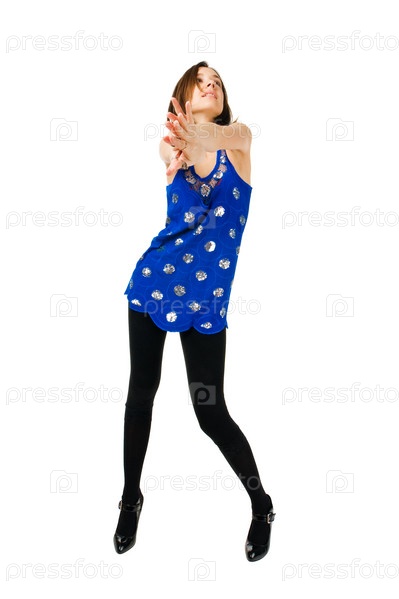 Танцующая девушка на белом фоне