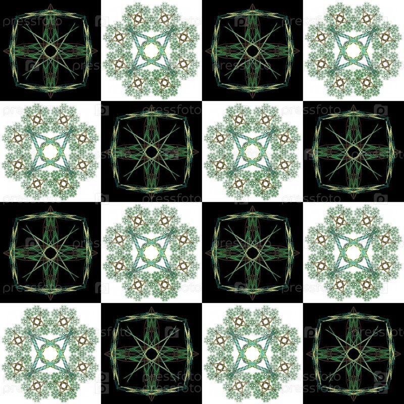 Текстура с черно-белой квадратной клеткой и зеленым узором