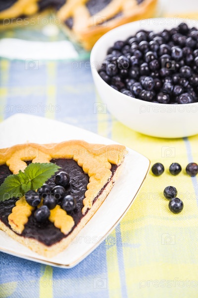 Кусок черничного пирога и свежих ягод