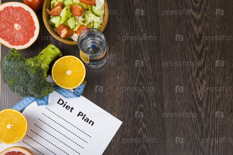 Еда и лист бумаги с планом диеты