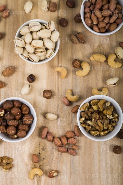 Орехи в тарелке на деревянном столе