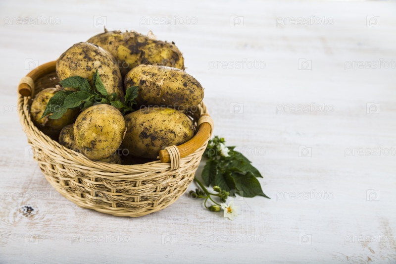 Сырой картофель в корзине
