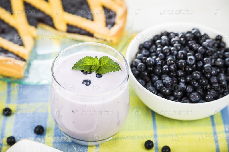 Кусочек черничного пирога и коктейль