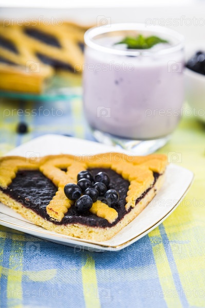 Кусочек черничного пирога и коктейль