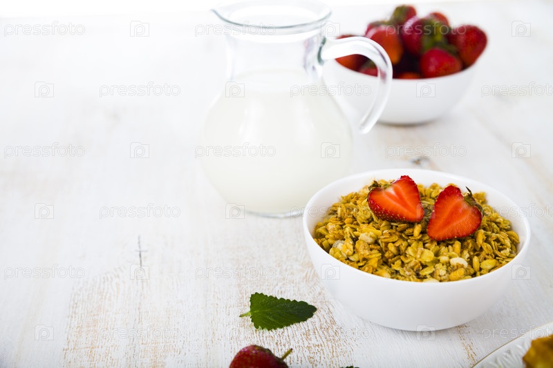 Гранола и смузи с клубникой