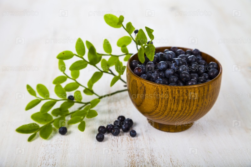 Черника в деревянной миске