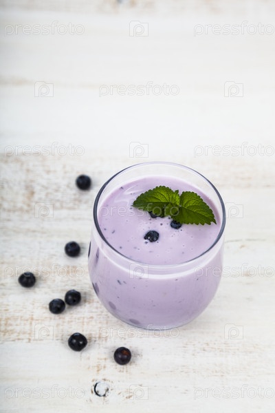 Черничный йогурт на деревянном столе