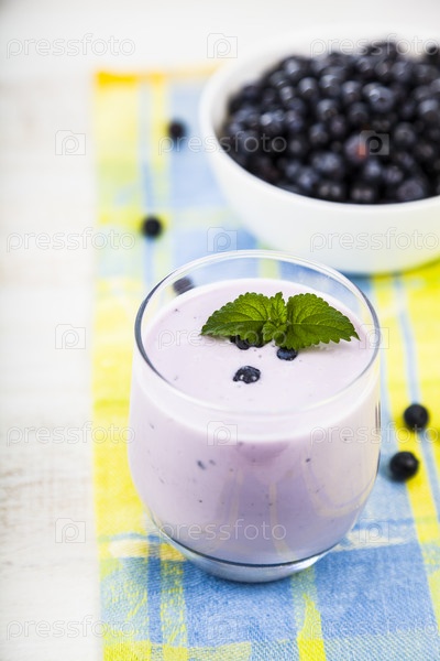 Черничный йогурт на деревянном столе