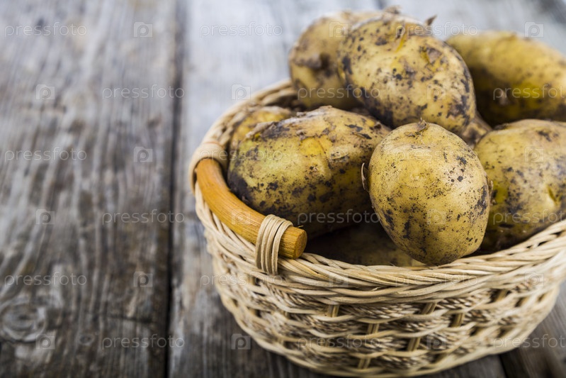Сырой картофель в корзине