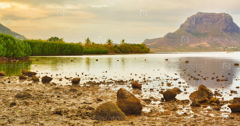 Удивительный вид на Ле Морн Брабант на закате. Маврикий. Панорама