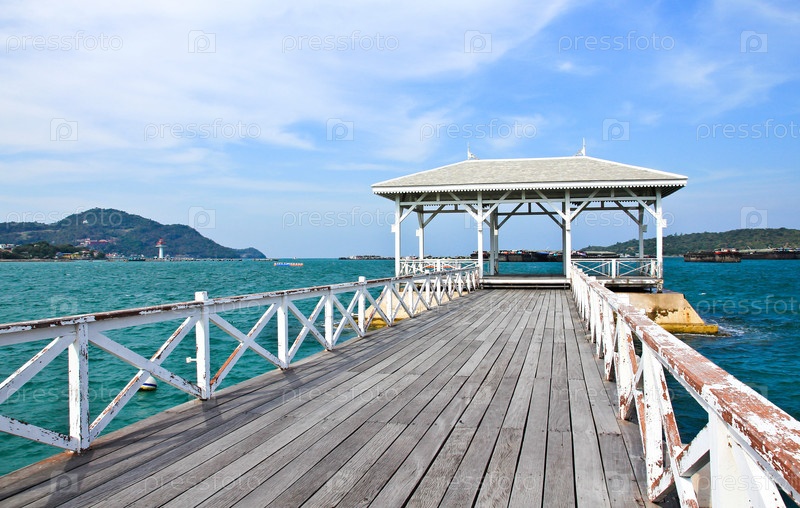 Красивый старый мост на острове Шри Чанга в Шрирача ампор, провинция Чонбури, Таиланд