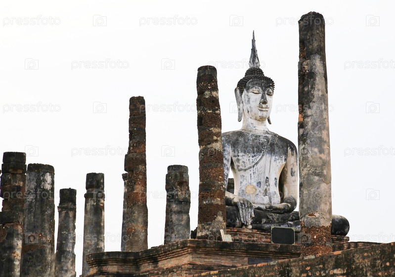Статуя древнего Будды. Исторический парк Сукхотай, старый город Таиланда 800 лет назад