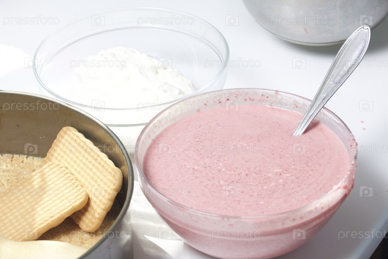 Приготовление чизкейка из творога и клубники
