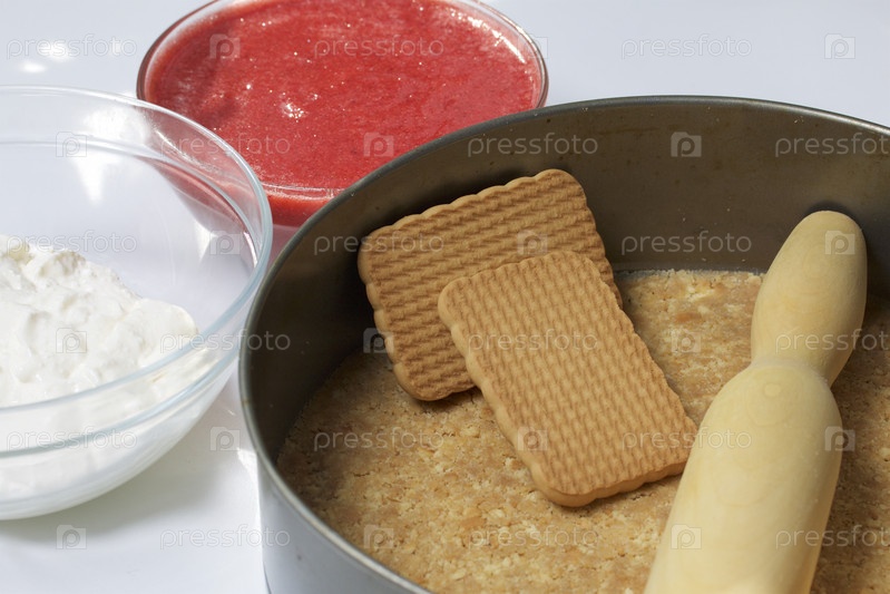 Приготовление чизкейка из творога и клубники