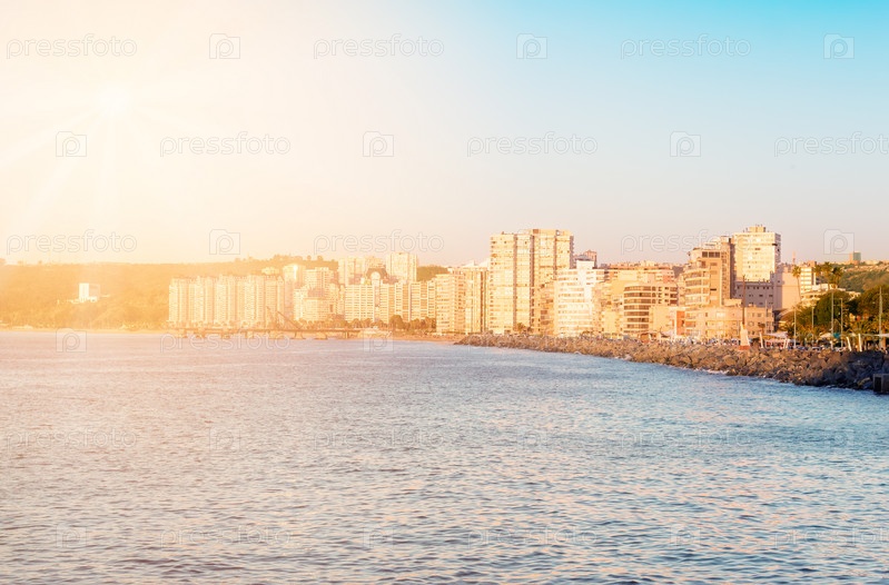 Тихий океан со зданиями Вина-дель-Мар, Чили