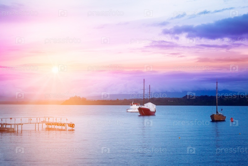 Вечерний океан с лодками