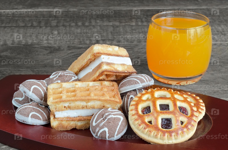 Различное печенья и сок