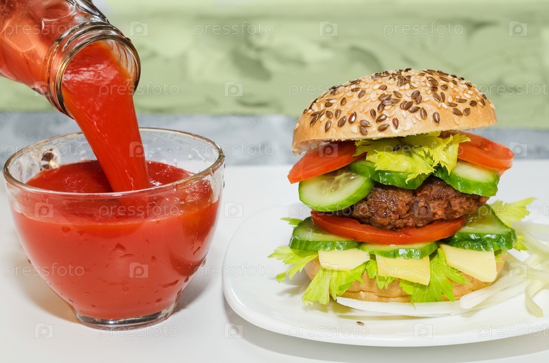Гамбургер и томатный сок