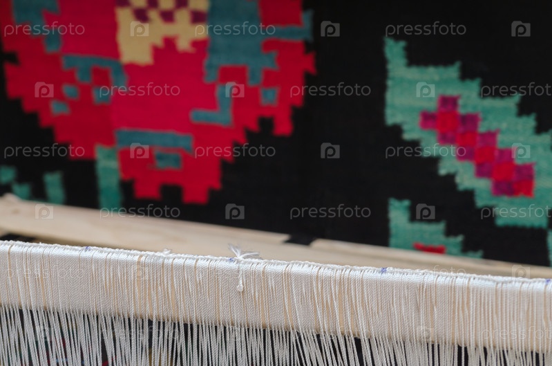 Фоновая часть ковра из шерсти и нитей основы на ткацком станке