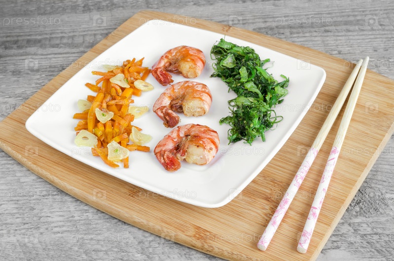 Креветки на тарелке