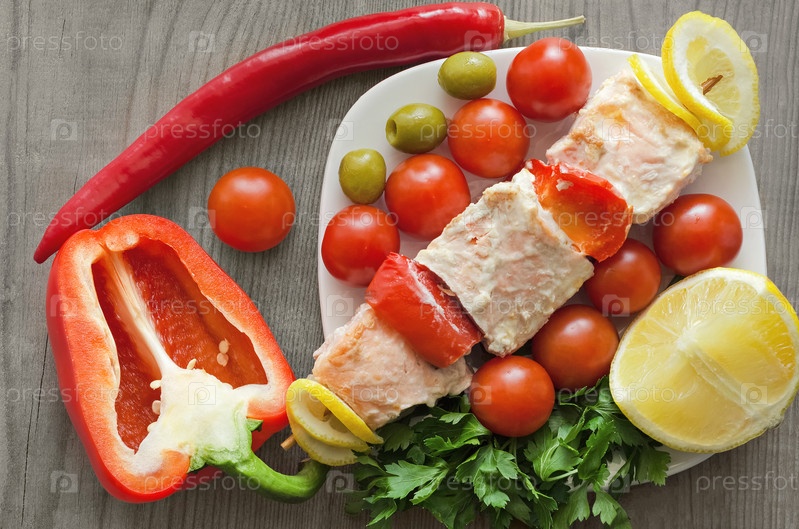 Шашлык из лосося на тарелке